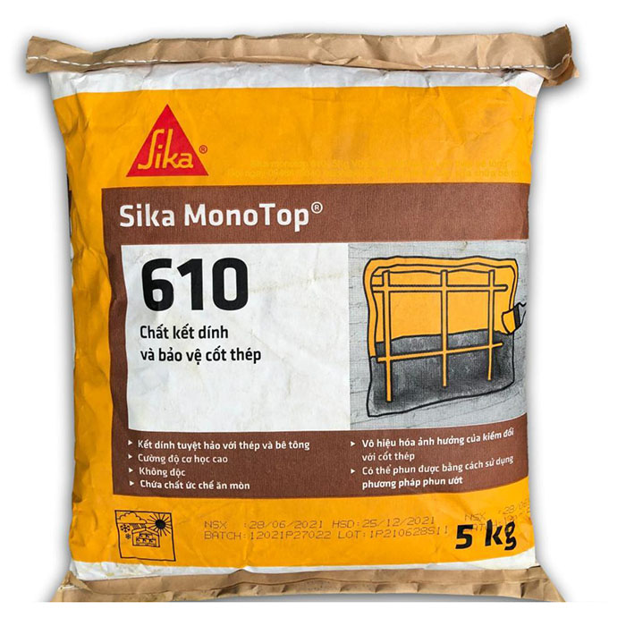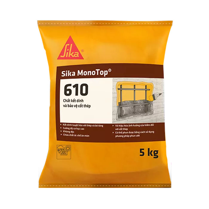 Sika MonoTop 610 là vật liệu một thành phần dựa trên nền xi măng và polymer cải tiến, có chứa silica fume, được sử dụng làm tác nhân kết nối và lớp bảo vệ chống ăn mòn cốt thép.