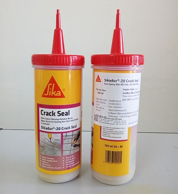 Sikadur 20 Crack Seal là một loại keo epoxy hai thành phần, dạng lỏng, có tính đàn hồi nhẹ và không chứa dung môi. Đặc biệt thích hợp cho việc trám các khe nứt nông (không phải nứt kết cấu) và lỗ rỗng trong bê tông.