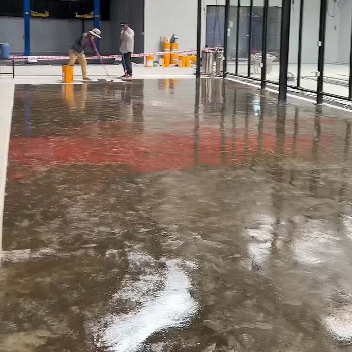 2. Phủ đều Sản phẩm trên toàn bộ mặt nền bằng bay hoặc chổi cao su.