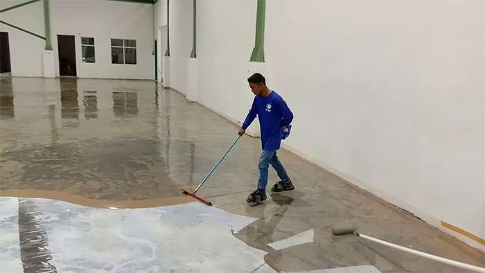 2. Sử dụng con lăn đinh ngắn hoặc chổi cao su để phủ đều Sản phẩm trên toàn bộ mặt nền.