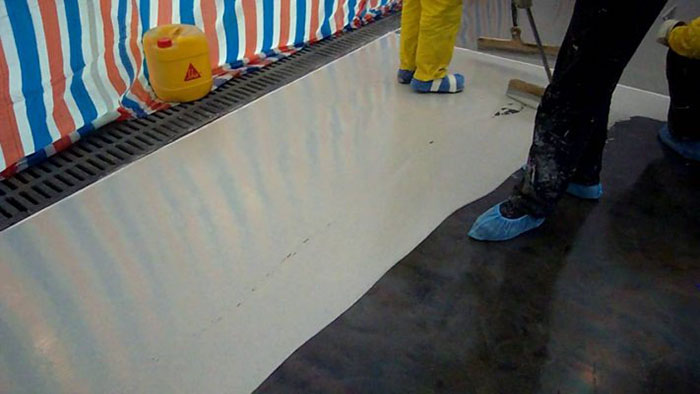 - Sikafloor 263 SL HC là chất lỏng hơi sệt, có thể trải lớp này bằng công cụ bay răng cưa.