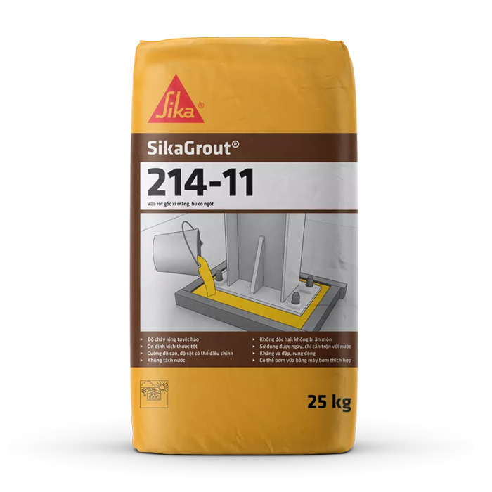 SikaGrout 214-11 là vữa rót gốc xi măng bù co ngót, tự san bằng, trộn sẵn, với khả năng kéo dài thời gian thi công để thích ứng với nhiệt độ môi trường xung quanh.