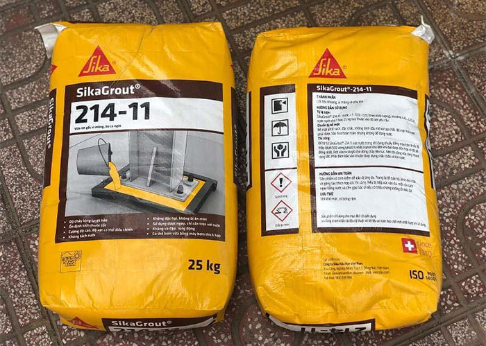 - Tỷ lệ trộn: SikaGrout 214-11 : nước = 1 : 0.13-0.15 (theo khối lượng). Hàm lượng nước: 13-15 %