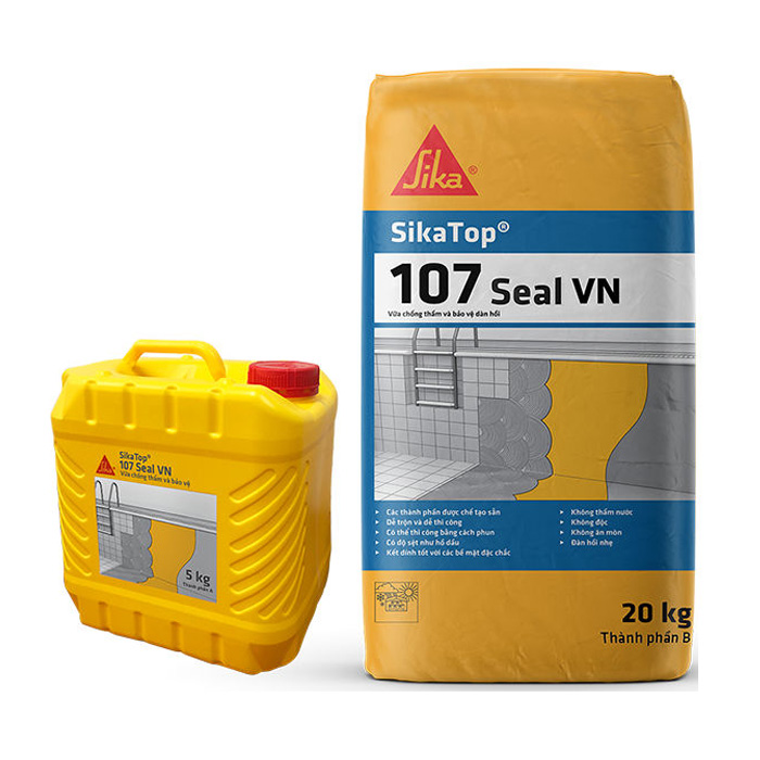 SikaTop 107 Seal VN là loại vữa chống thấm hai thành phần với nền xi măng polyme cải tiến. Sản phẩm này được sử dụng để thi công lên bề mặt vữa và bê tông nhằm ngăn chặn sự thấm nước.