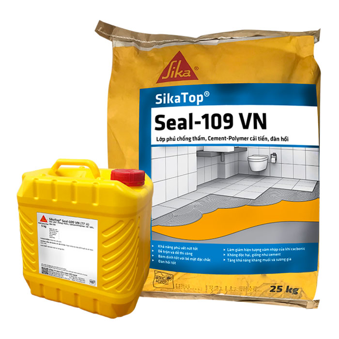 SikaTop 109 Seal VN là một lớp phủ chống thấm gồm hai thành phần với tính đàn hồi, được sử dụng để thi công lên bề mặt bê tông hoặc vữa nhằm ngăn nước xâm nhập.